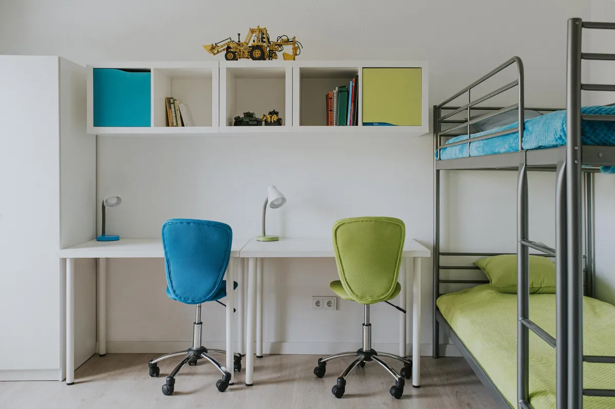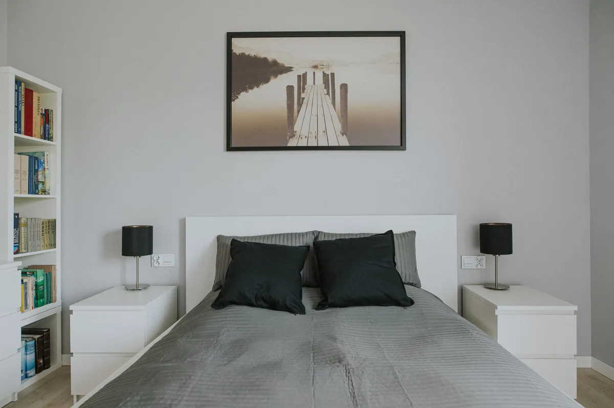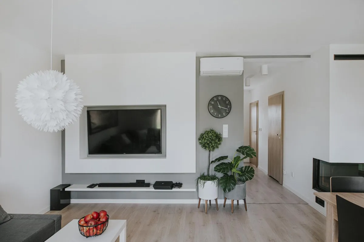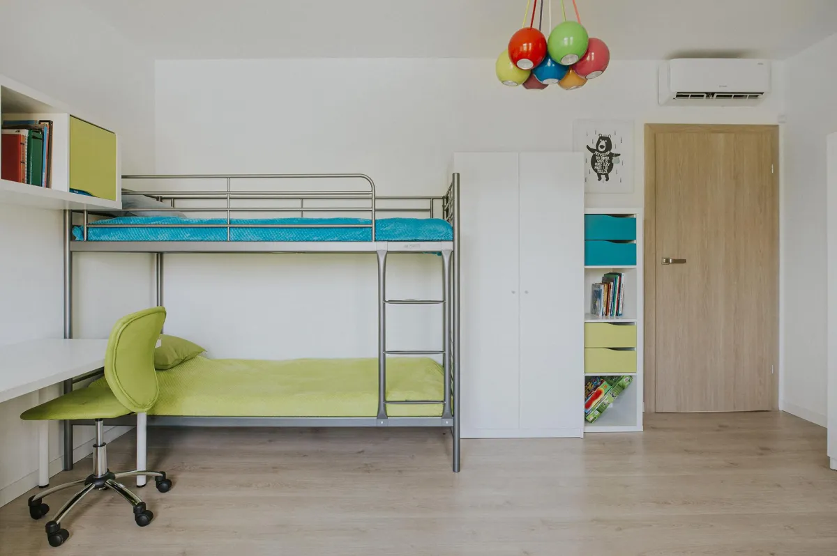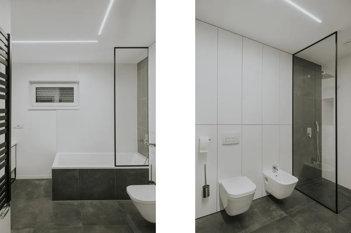 Projekt wszystkich wnętrz jest kontynuacją koncepcji całego domu; głównym założeniem było stworzenie prostej, eleganckiej przestrzeni, która nie kosztowałaby fortuny; spora ilość elementów wyposażenia to produkty gotowe, które można dostać w bardzo popularnych sklepach meblarskich; niemniej jednak niektóre z przedmiotów były wykonywane na zamówienie, a wszystkie zastosowane tu elementy zostały zaprojektowane tak, by się nawzajem uzupełniać i stworzyć stylową i spójną przestrzeń; główne zastosowane tu wykończenia to: drewno, beton, czarne detale, biele i szarości jako baza; w sypialni głównej dodano elementy z miedzi, w przestrzeni dziennej – nieco soczystej czerwieni, w holu wejściowym – ciemny granat, a w pokoju dziecięcym zdecydowane kolory zaznaczają osobistą przestrzeń każdego z dzieci; dodanie kilku zdjęć, paru grafik i dobrego oświetlenia uzupełniło klimat przytulnego i wygodnego domu