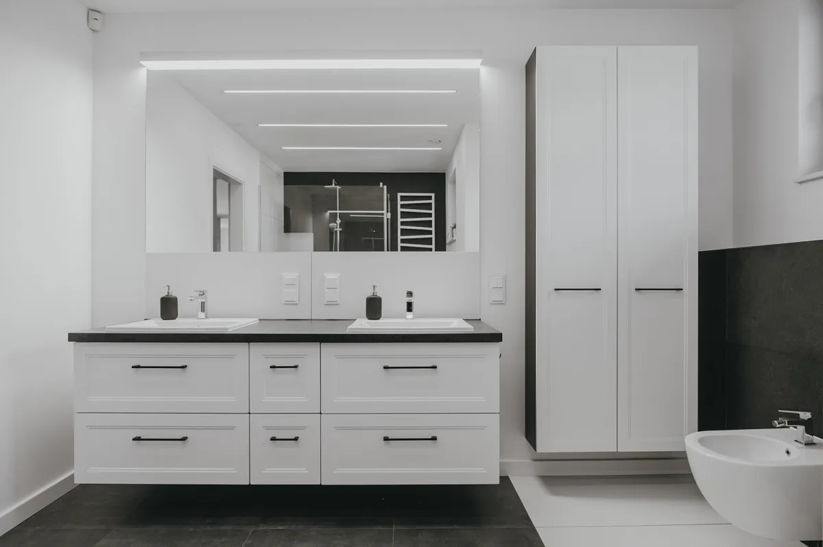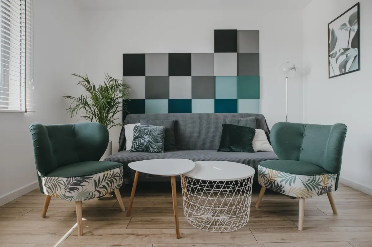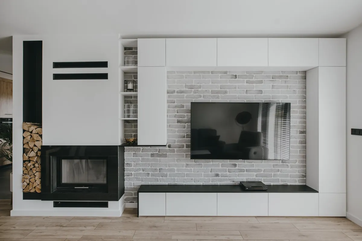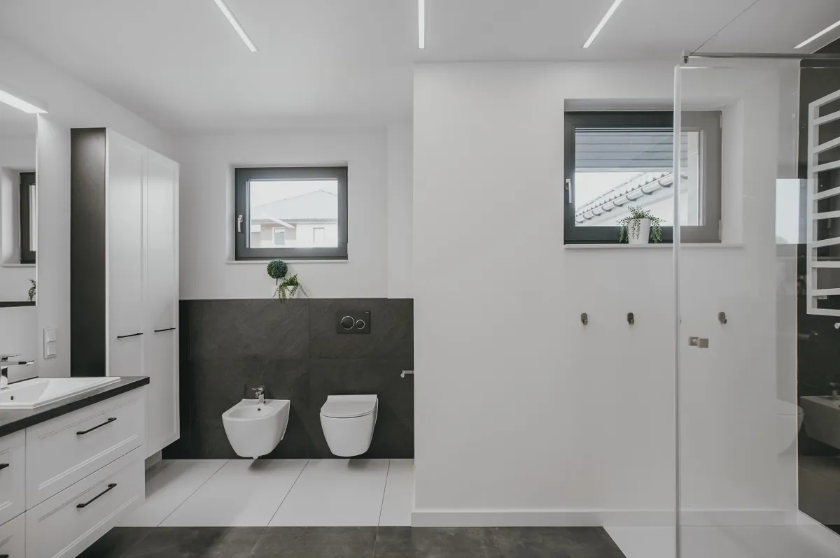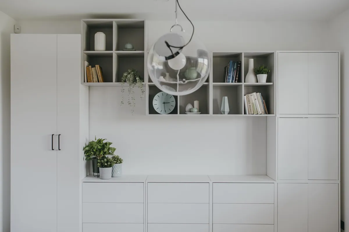 nowo wybudowany przestrzenny dom wymagał pełnego projektu wnętrz, utrzymanych we współczesnym klimacie, ale z odrobiną nostalgii; wszystkie pomieszczenia zostały zaprojektowane jako nowoczesne, ale w wybranych miejscach można zauważyć: stare pianino z lustrem w złoconej klasycznej ramie, którym towarzyszą nowe czarno-złote lampy, albo secesyjna akwarela zawieszona w minimalistycznym holu, czy stylowy zegar w modnym holu wejściowym, itd.; główne materiały wykończeniowe pozostają w harmonii: drewno, beton i szara cegła umieszczone na białym tle wraz z powtarzalnymi czarnymi detalami; często pojawiają się też motywy roślinne: na szklanych drzwiach do strefy dziennej, w drzewnym kształcie półki, na obiciach krzeseł, poduszkach i w formie roślin ustawionych w całym domu; 3 sypialnie otrzymały dodatkowe kolory: granatowy, odcienie zieleni i szarości; łazienki i hole utrzymano w czerni&bieli; prawie wszystkie meble zostały wykonane na zamówienie, co w połączeniu z powtarzalnymi wykończeniami przestrzeni stworzyło spójną i przytulną przestrzeń domową