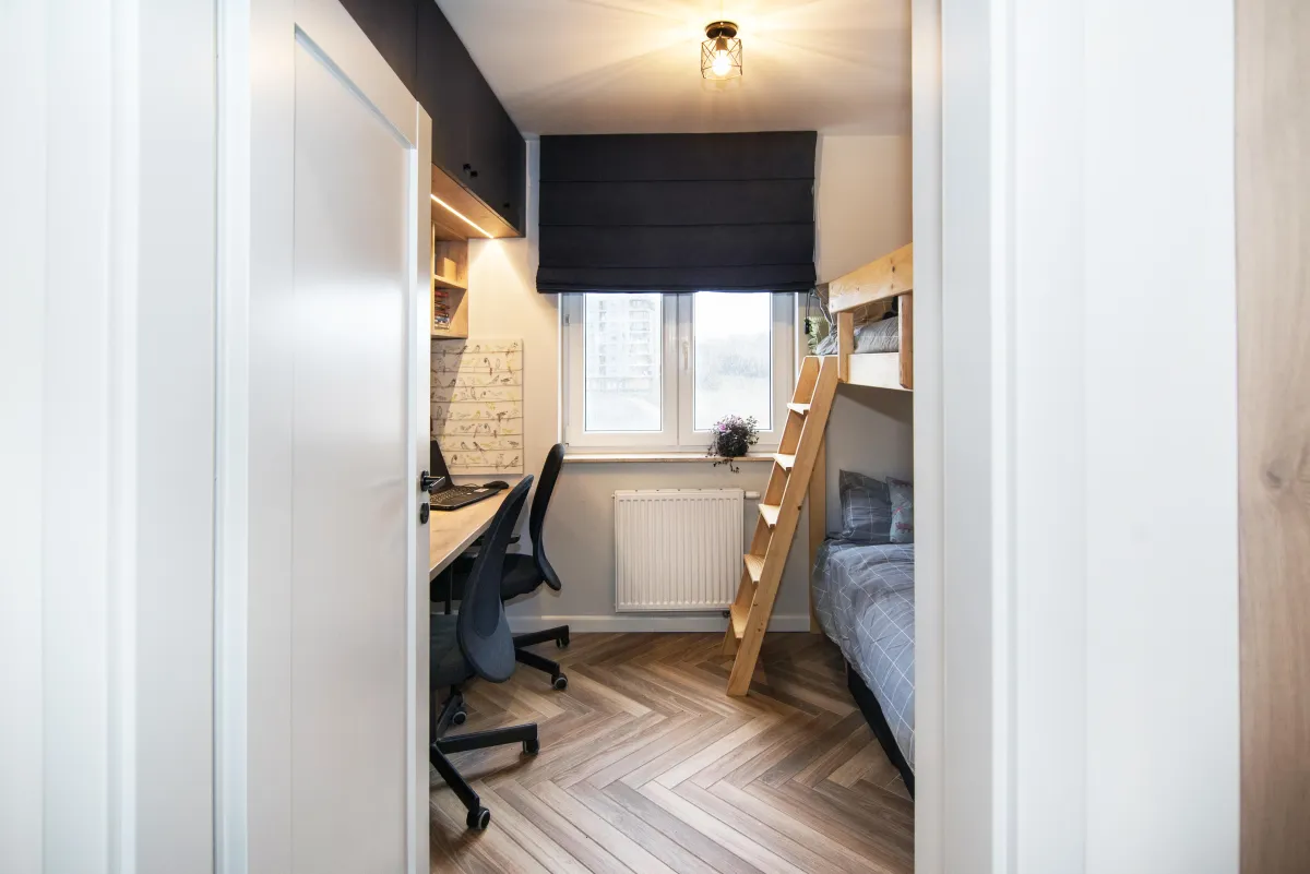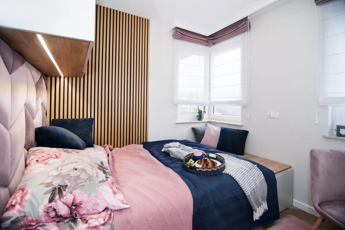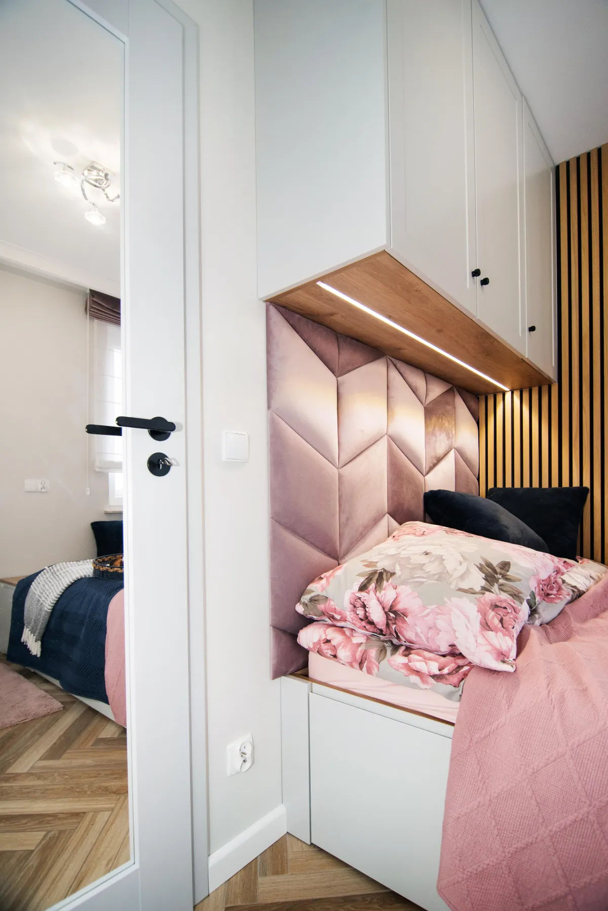 Mieszkanie o powierzchni 49 m² zostało zaprojektowane dla mamy z dwójką synów jako wygodna, domowa oaza. Kobiecy charakter wnętrza połączono tu z praktycznymi rozwiązaniami, które ułatwiają codzienne życie po przeprowadzce. Nowy start – nowe rozdanie – i szybki, sprawny remont, który pozwolił szybko zamieszkać w gotowej przestrzeni.
