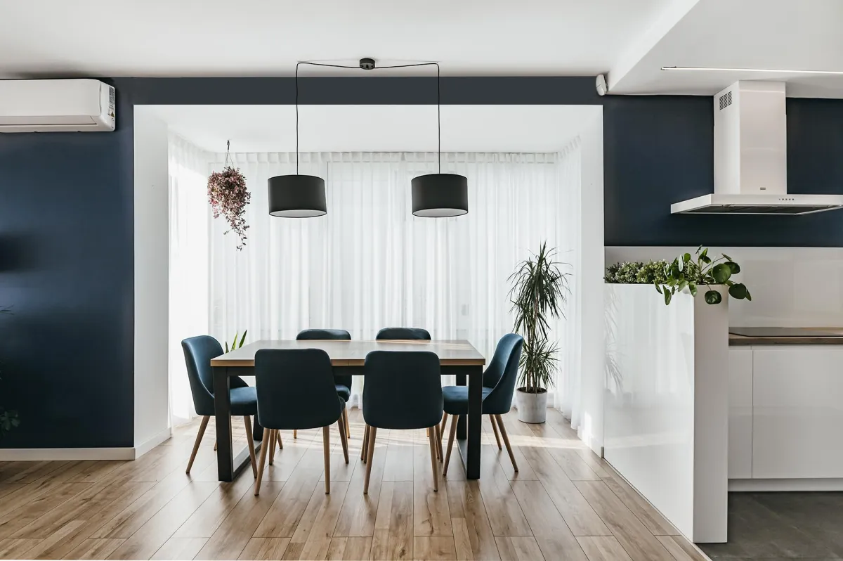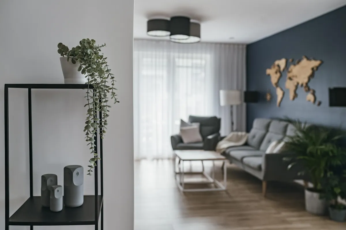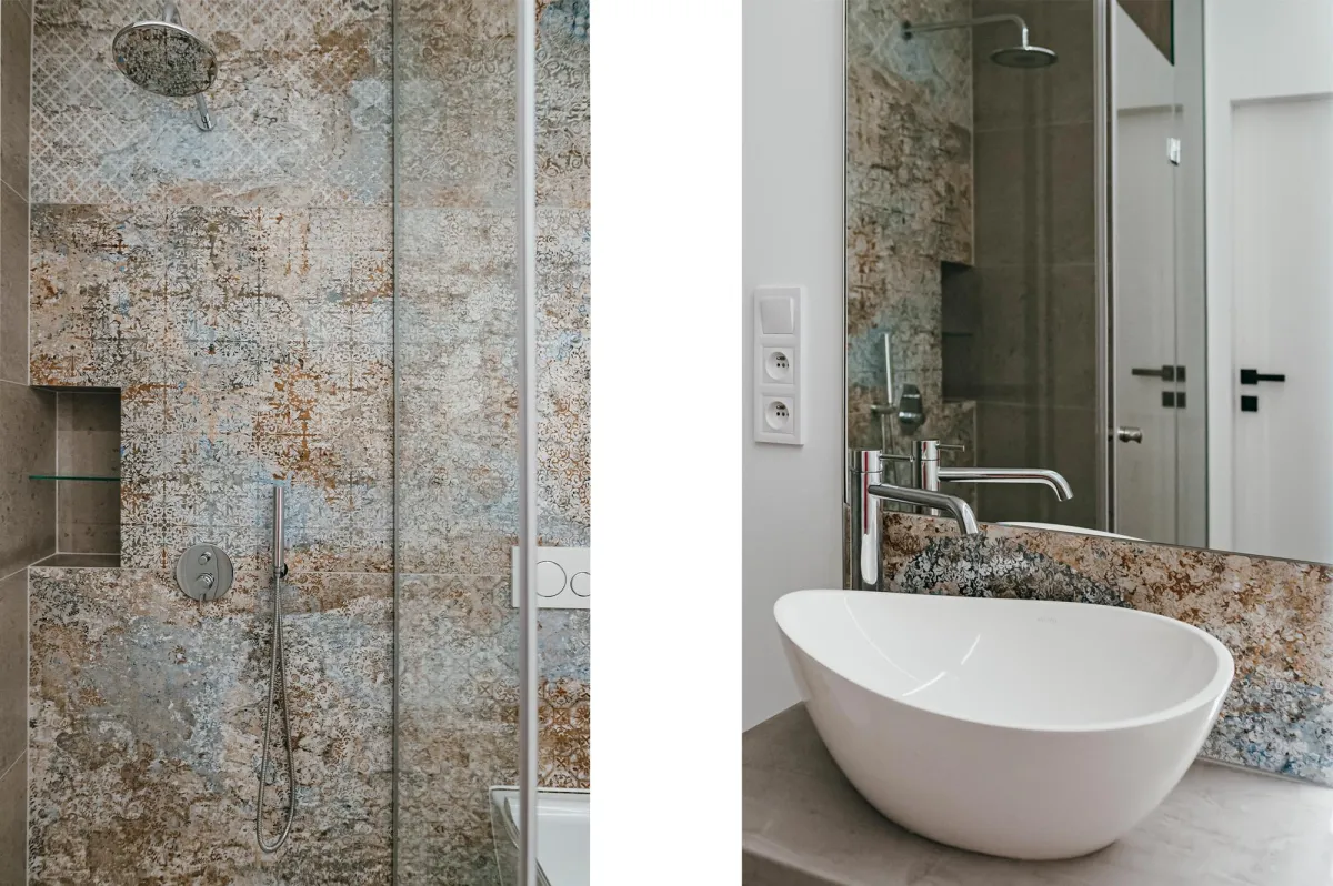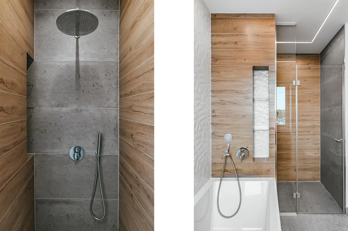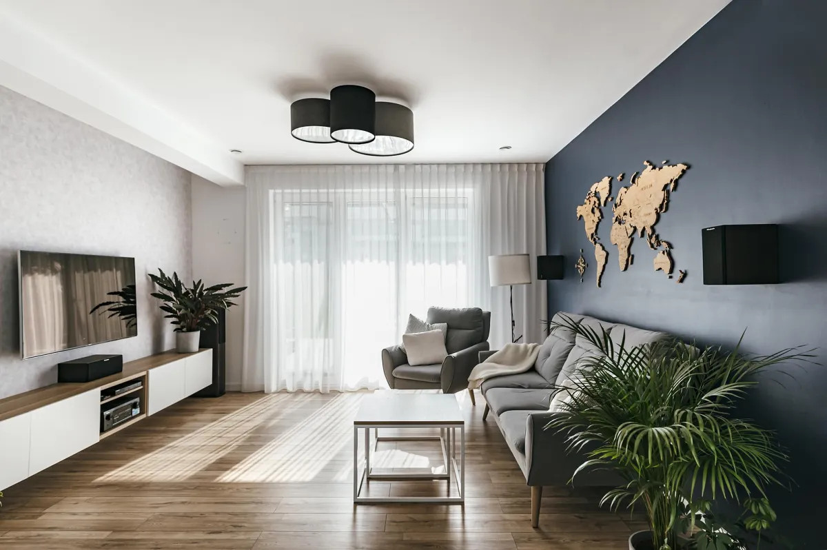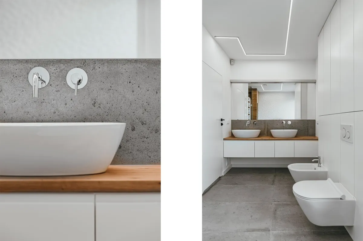 Projektowanie wnętrz w nowo powstającym domu dla powiększającej się rodziny jest zawsze przyjemnością; wnętrza te zostały zaprojektowane tak, by tworzyły wygodną i nowoczesną przestrzeń; na parterze znajduje się strefa dzienna, połączona długą granatową ścianą z kuchnią i jadalnią; na piętrze zlokalizowano kilka sypialni, w których dominuje światło i zieleń; obie łazienki zaprojektowano wykorzystując nowoczesne płytki i wyposażenie; przestrzenie łączące są natomiast jak białe tło z interesującymi akcentami w postaci głowy lwa na betonowej ścianie, czy czarnych smukłych konsoli z roślinami albo przeszklonych metalowych drzwi między wejściem a holem; jest tu dużo przestrzeni do przechowywania oraz dodatkowa sypialnia dla gości; wnętrza są wypełnione światłem i zielenią oraz wykończone dobrymi materiałami, są nowoczesne, ale i przytulne; tworzą z tego budynku prawdziwy rodzinny dom