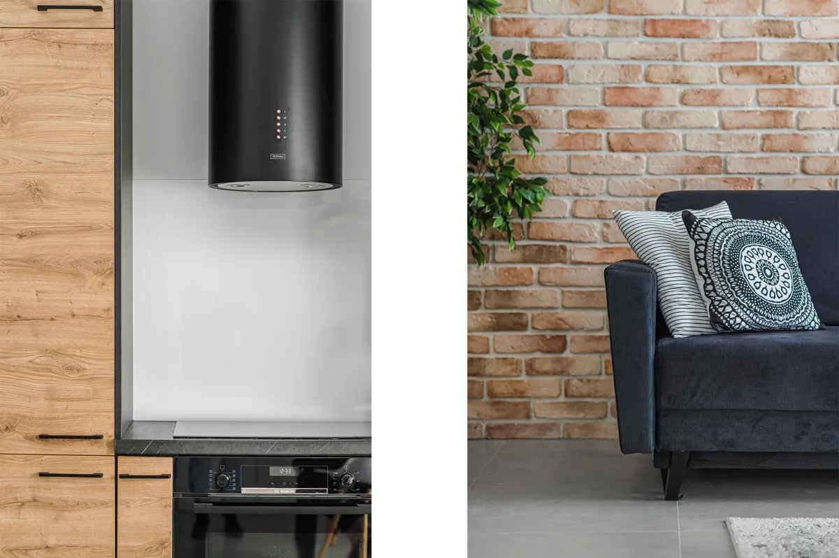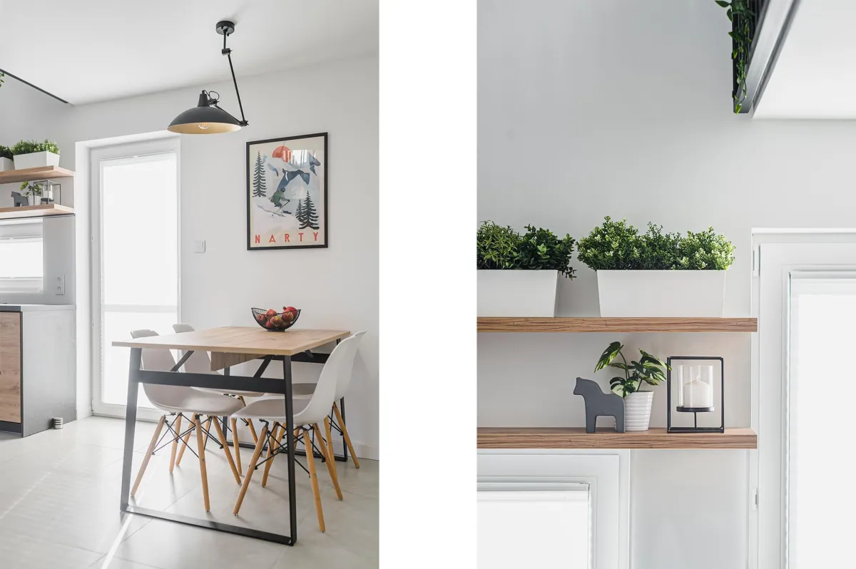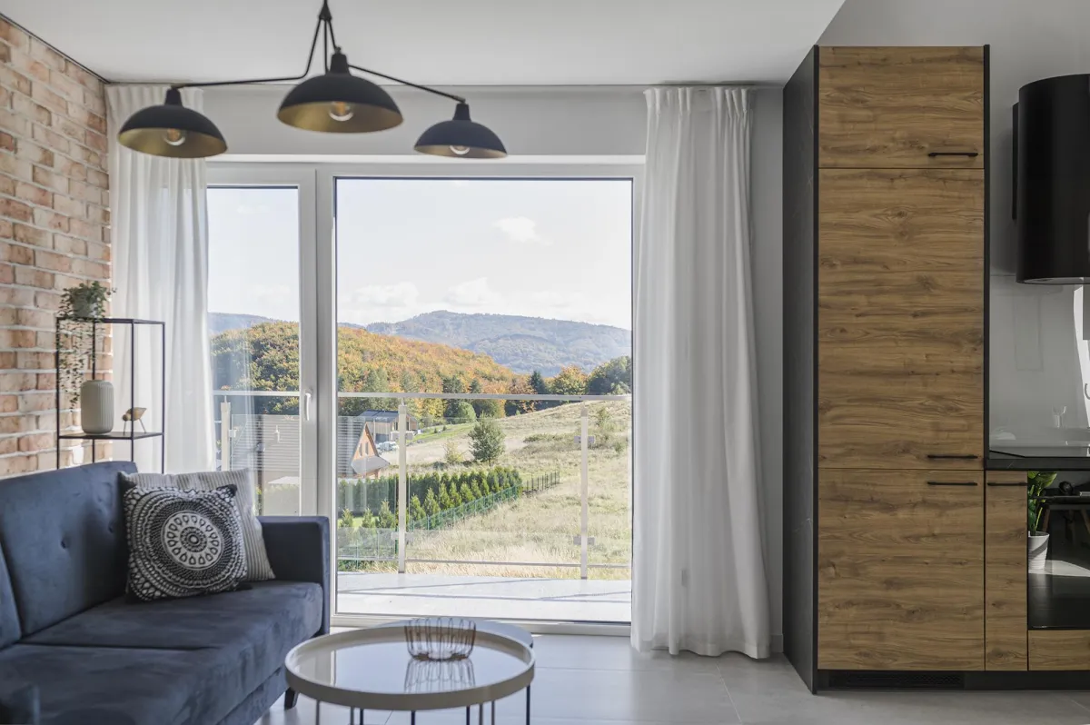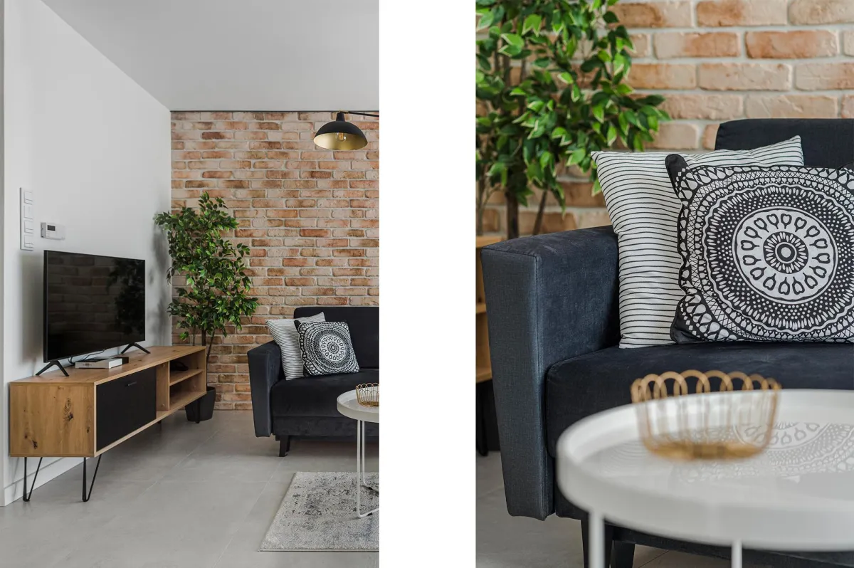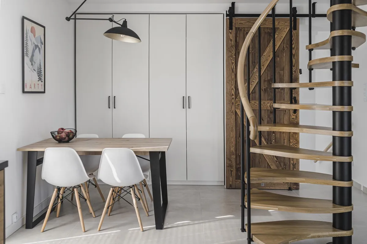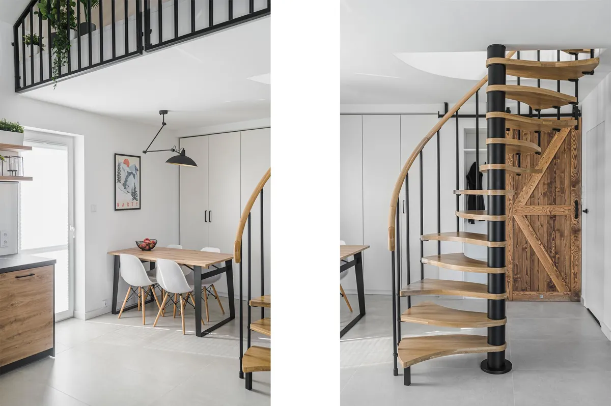 pewna sportowa rodzina miała marzenie o małej chatce lub domku letniskowym w Beskidach – a to marzenie przekształciło się w 2-poziomowe mini mieszkanie ze spektakularnym widokiem; z powodu małego metrażu lokum, dodatkowo umieszczonego pod spadzistym dachem, cała przestrzeń musiała być zaplanowana ze szczególną dbałością; znalazło się jednak miejsce na wygodny salon z kuchnią i jadalnią, połączony spiralnymi schodami prowadzącymi do części prywatnej z 2ma sypialniami, jest także niewielka łazienka i nawet przestrzeń do przechowywania; wnętrza zaprojektowano z zastosowaniem nowoczesnych wykończeń – jak beton i stal, ale też z dodatkiem tradycyjnej cegły i rustykalnego dębu, a całość uzupełniają miękkie tkaniny i rośliny; wszystko to razem tworzy współczesne, ale przytulne wnętrze, położone w zachwycającym otoczeniu gór, gdzie rodzina cieszy się swoim wolnym czasem